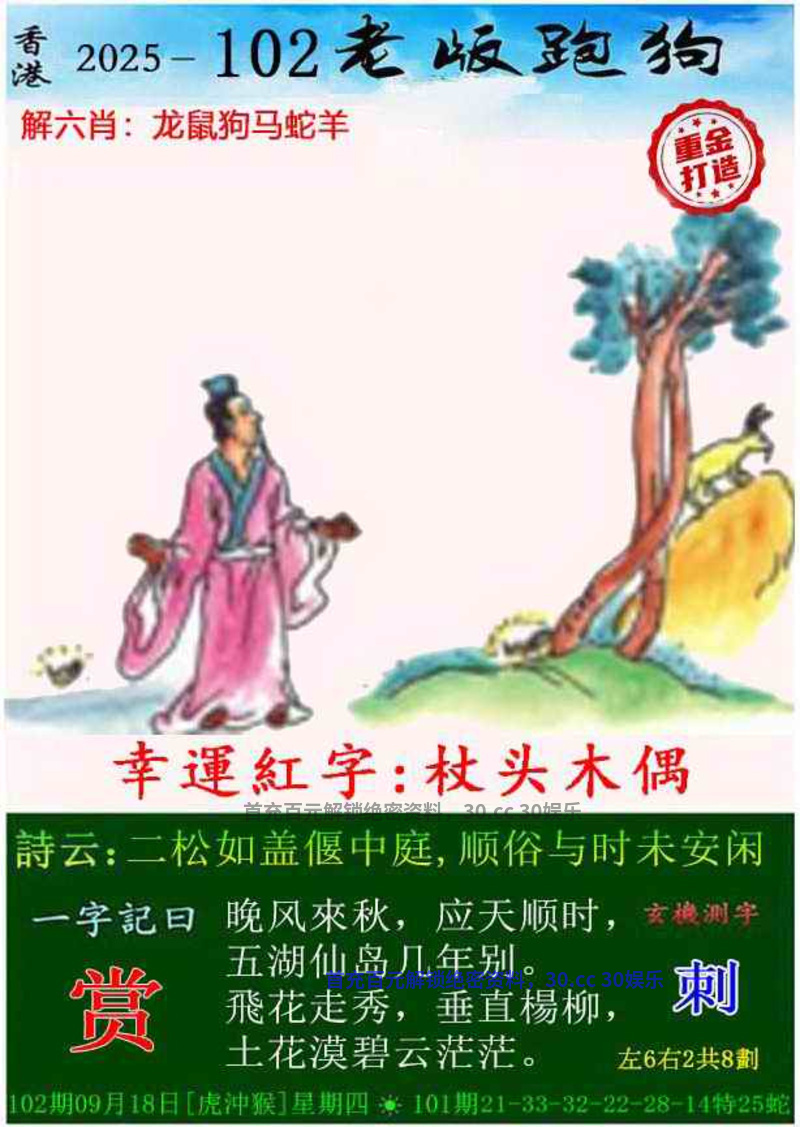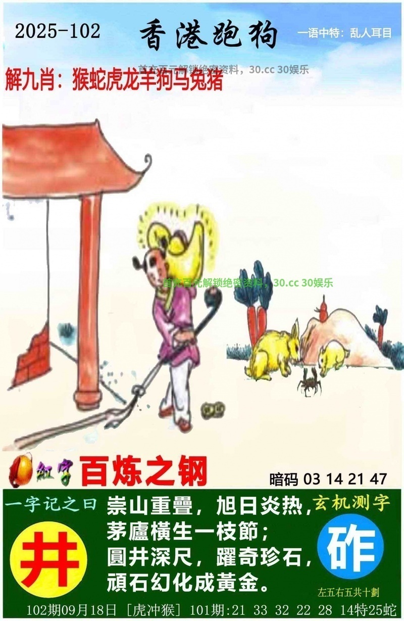 101期:今期牛马狗看定,特碼旺大合单出开蛇25准 ①杀肖:龙鼠猪 ③大数+合单 |